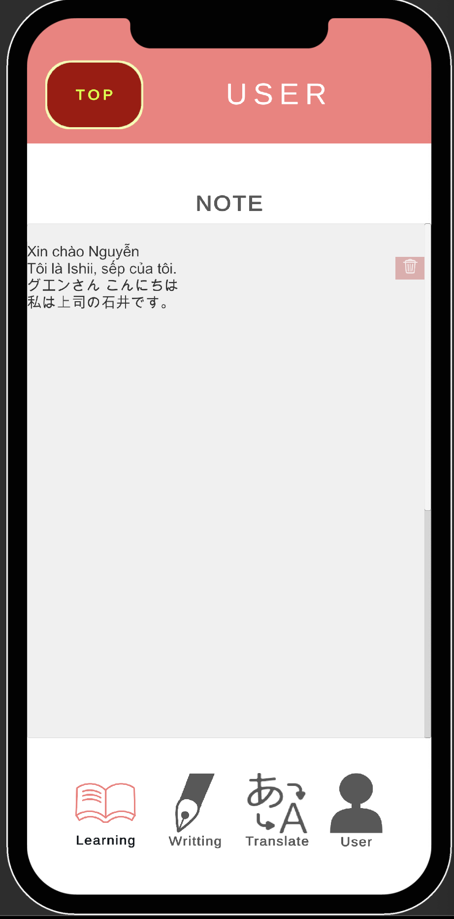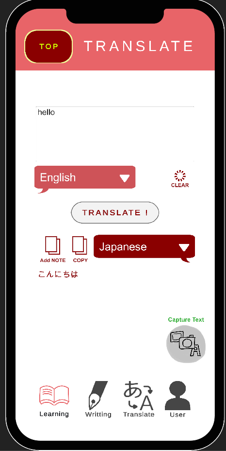 翻訳したテキストを、ノートに保存して、あとで確認することができます。