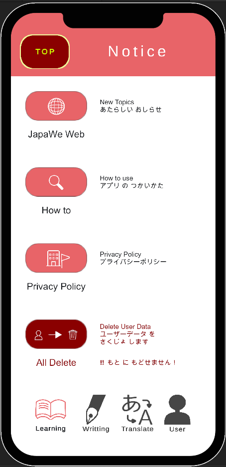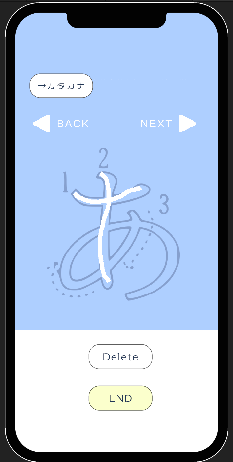 ひらがな、カタカナの書き順を確認しながら文字を書く練習ができます。